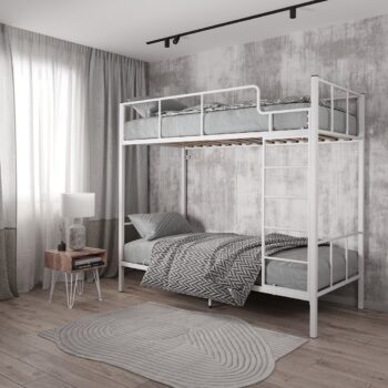 Кровать выполнена из качественного металла, все швы сделаны по технологии и надежно сварены. В отличие от деревянной двухъярусной кровати, металлическая смотрится менее громоздкой. Кроме того, спальное место выдерживает до 180 кг на одно спальное место, что позволяет пользоваться кроватью и взрослым, и детям. Кровать “Гранада” представлена в нескольких комплектациях и размерах: без полок, с полками, с разными вариантами лестниц. Такая кровать идеально подойдет в стиль лофт.