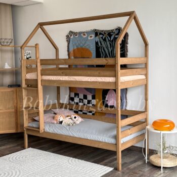 Двухъярусная кровать-домик «Мальта» из массива сосны 80×180, 90Х200 (без ящиков)(антик)