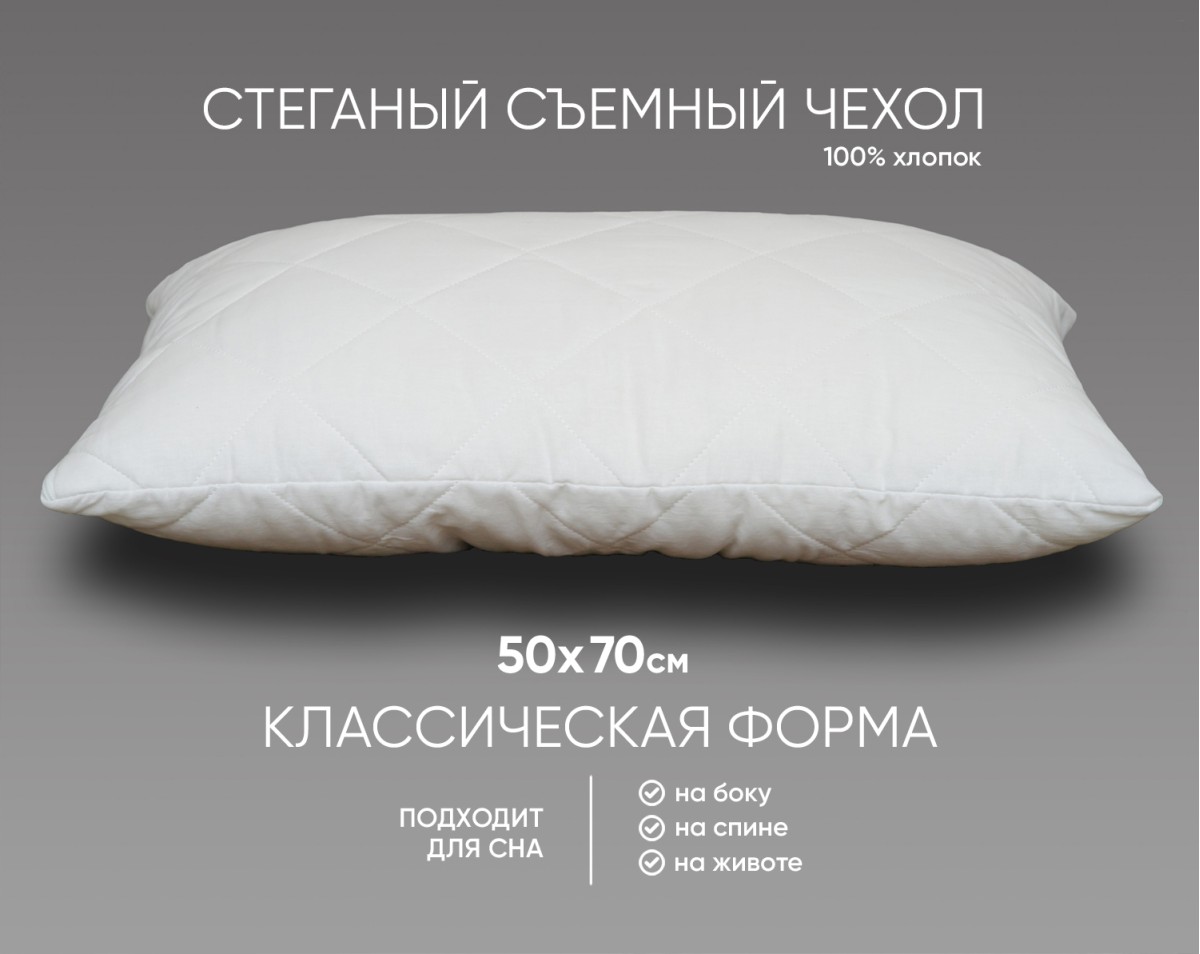 Подушка обладает повышенной упругостью, в отличие от перьевых, а простеганная ткань по технологии глубокой стежки добавляет наибольшего комфорта Вашему сну.Позволяет обеспечивать спящему лучшую поддержку позвонков шейного отдела.Чехол 100% хлопок — стеганный трикотажный на молнии, который при необходимости можно постирать как вручную, так и в стиральной машине.