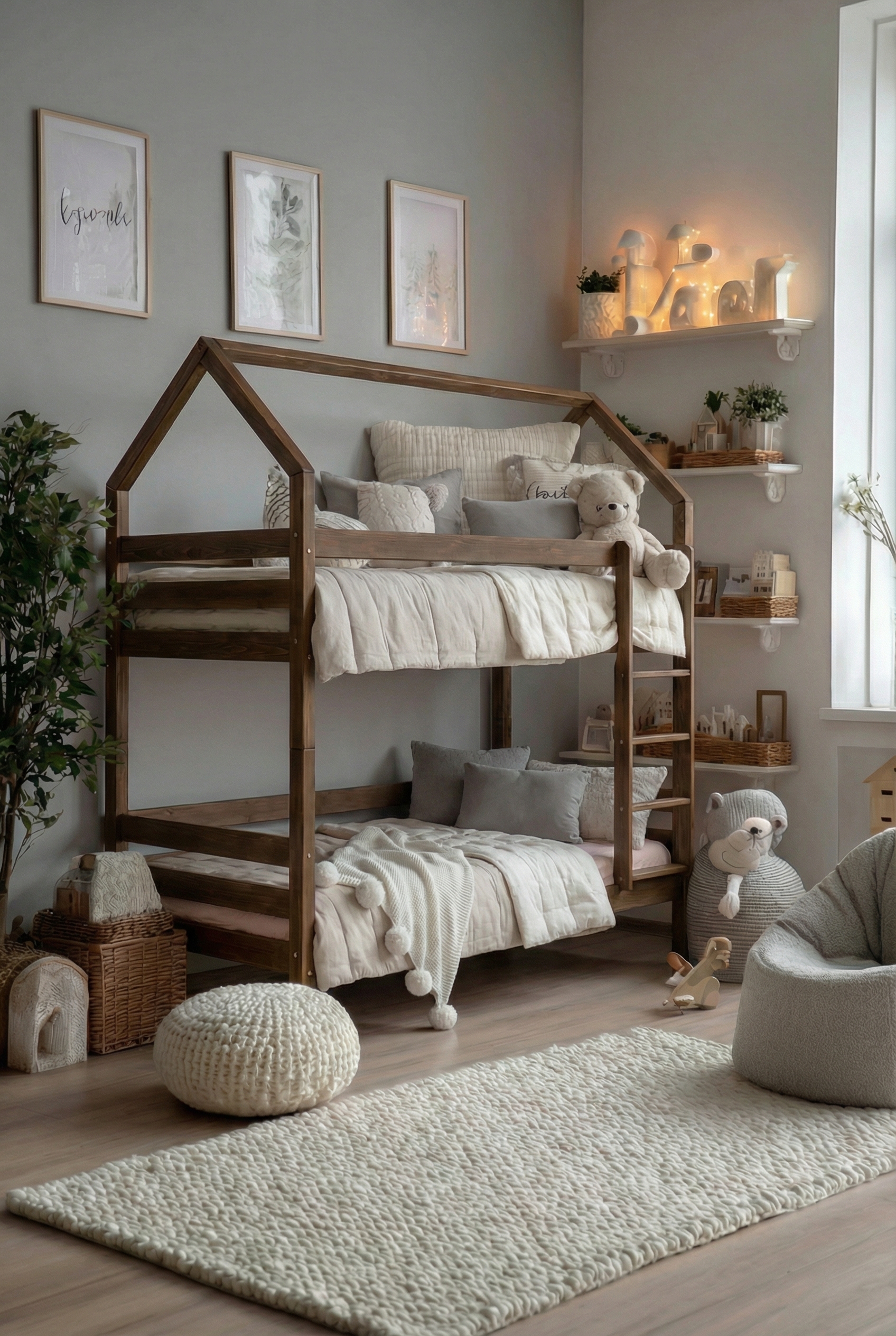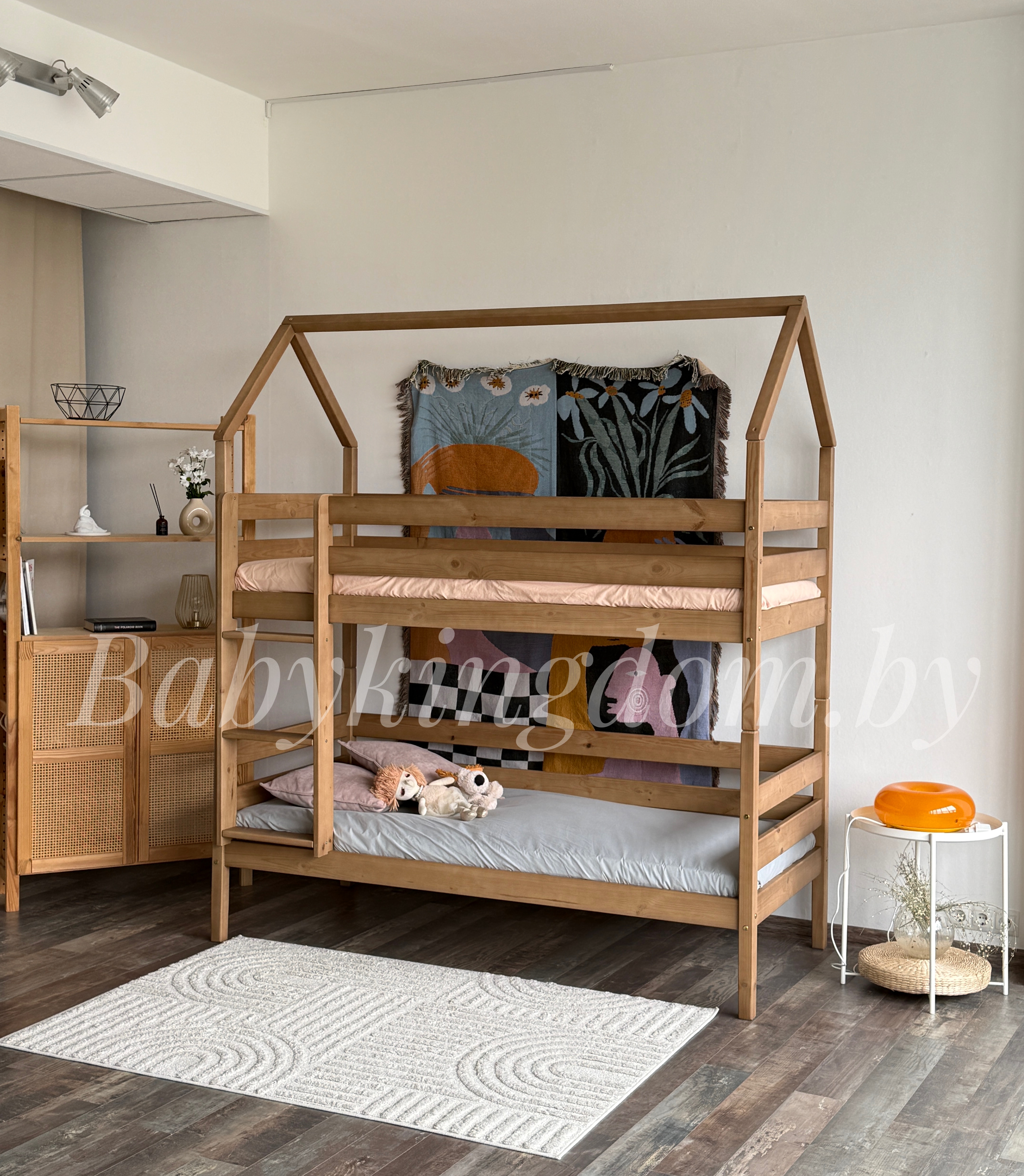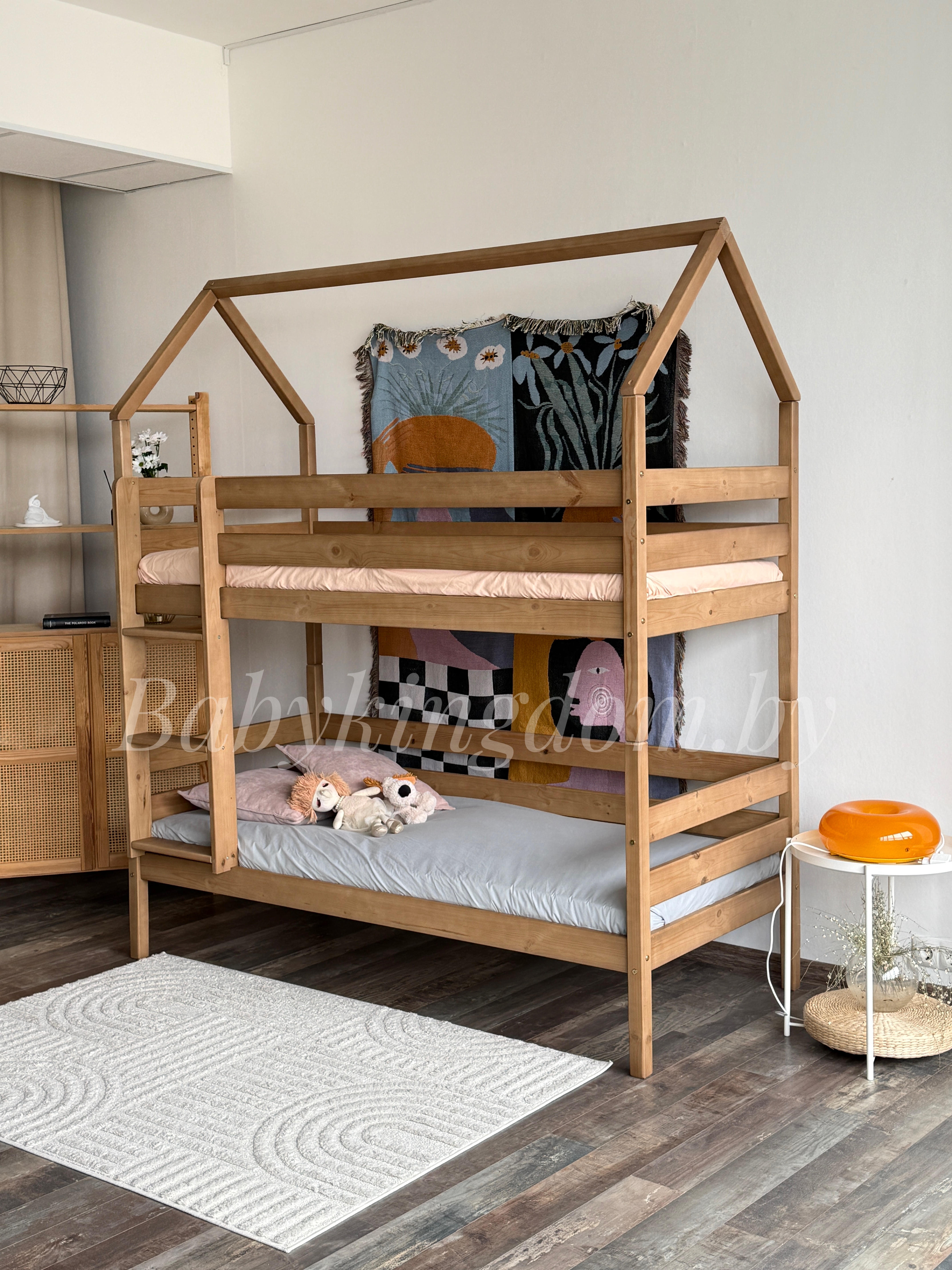 Сделанная из высококачественного массива сосны, она отличается прочностью и долговечностью, обеспечивая безопасность и комфорт. Нежные линии и мягкие формы Как будто само дерево раскрывает свои тайны, даря вашим детям вдохновение на каждом шагу!