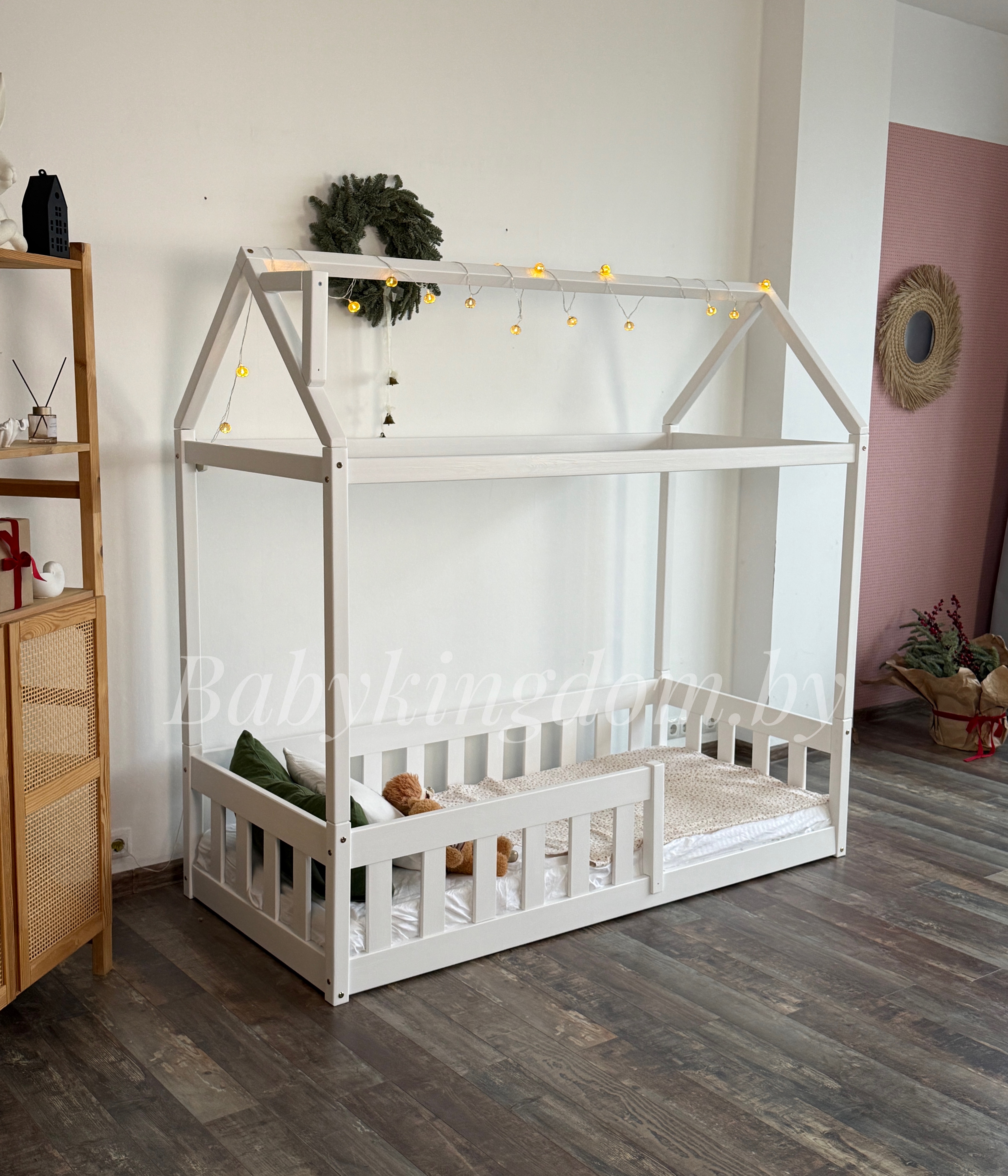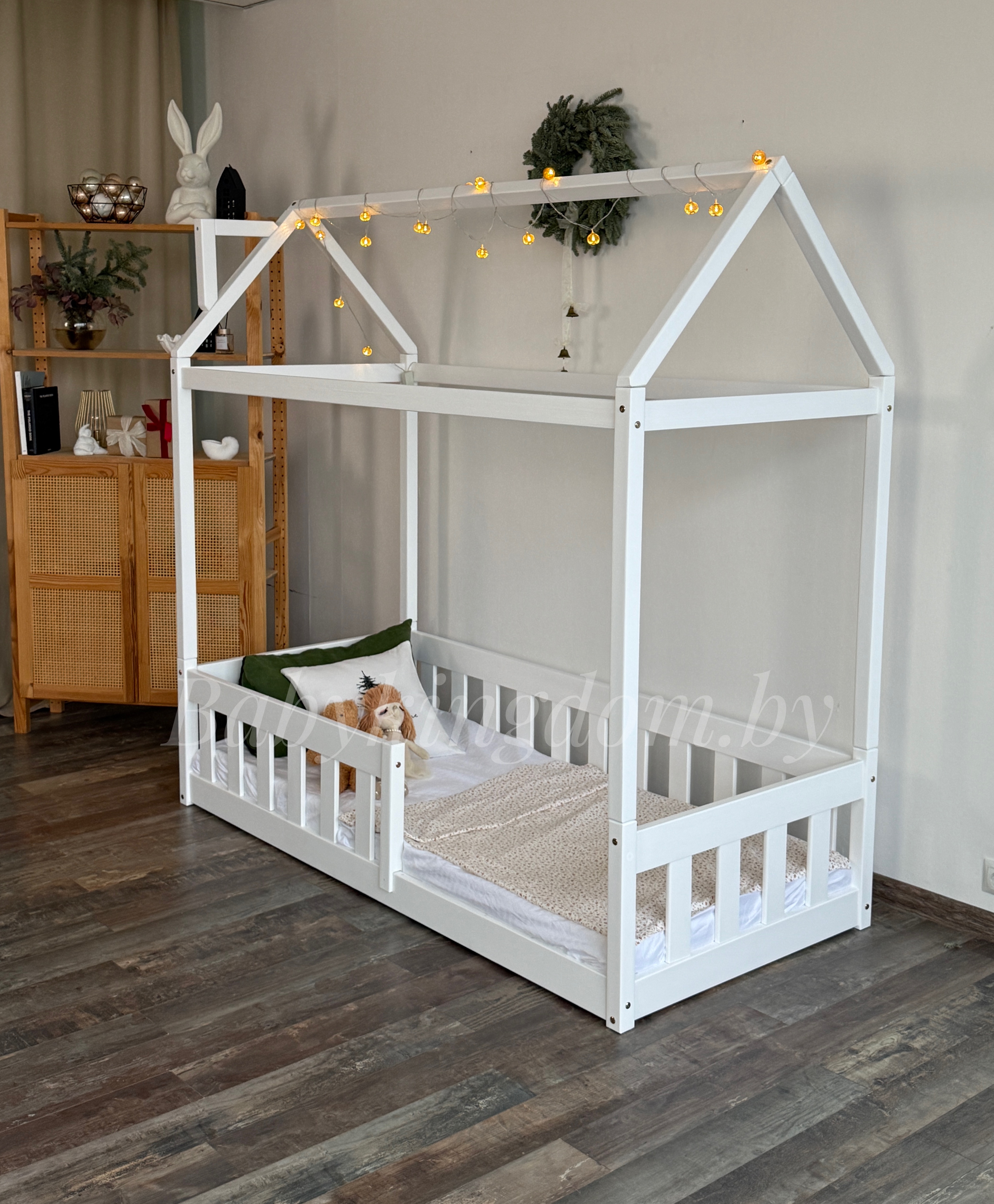 Односпальная напольная кровать «Грейси домик «(белый)