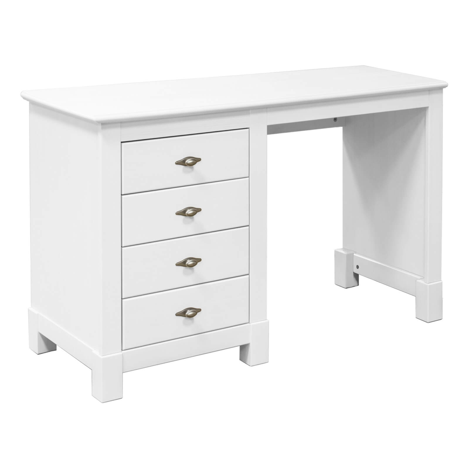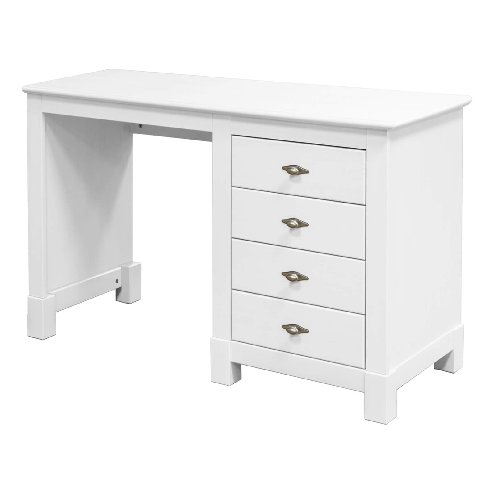 Письменный стол из коллекции Рауна 04 с 1 тумбой имеет достаточно универсальный дизайн, благодаря чему впишется как в рабочий кабинет, так и небольшую квартиру-студию. Четыре вместительных выдвижных ящика помогут сохранить в порядке документы и записи. На широкой поверхности легко разместить персональный компьютер. Тумба монтируется как слева, так и справа.